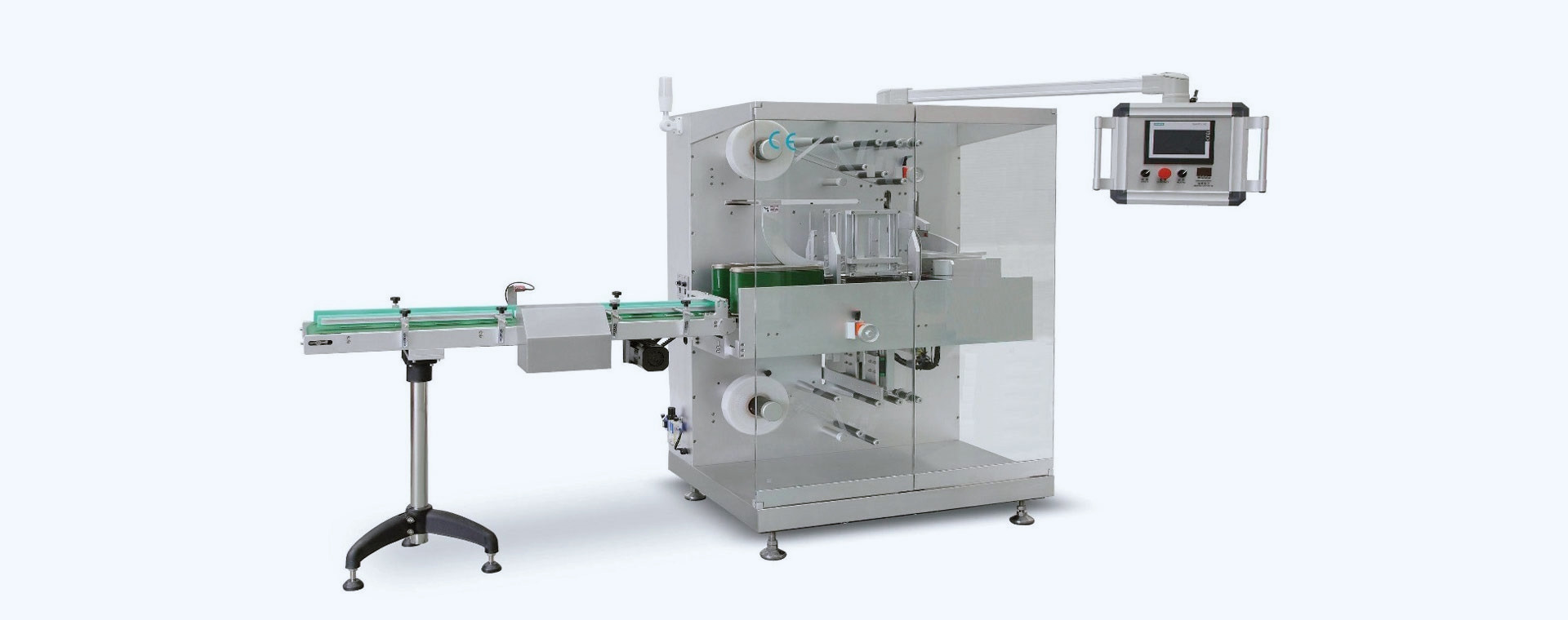 该机适用于制药行业及其他小商品包装,由带状薄膜对纸盒或有规则形状进行捆扎包装(代替中包装),与热收缩机及三维封闭式薄膜包装机相比,因不需加热既有显著的节能效果,且其属带状局部捆包可节约包装材料50%左右,并解决了热收缩机包装的薄膜起皱和外观不整齐问题,可与泡罩包装机、装盒机、装箱机等连接形成包装生产线。